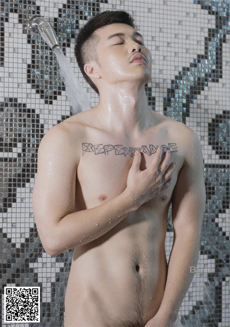 每一滴水彈到了結實的胸,腹肌